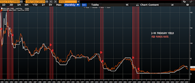 Since Mr. Navarro brought it up, here’s our yield curve graph. Top panel is the 2-yr/10-yr, bottom is the 3-mo/10-yr (the one the Fed tracks):