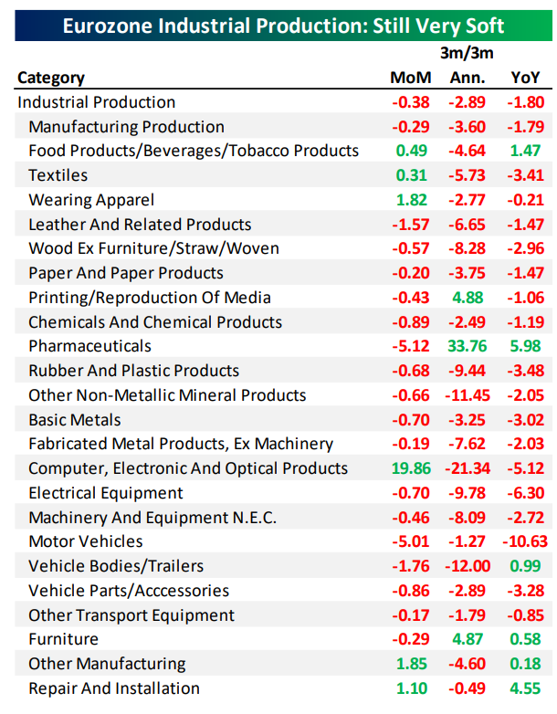 Given the color of the latest release of the Eurozone’s Industrial Production numbers, we certainly can’t fault the ECB for announcing a rate cut and a new round of QE this morning: