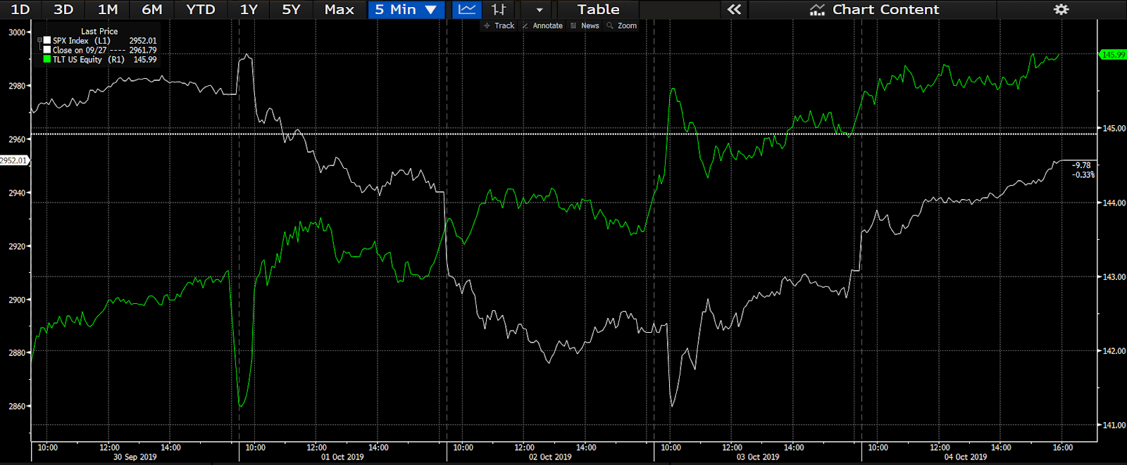 5-day, 5-minute chart (bonds green, stocks white): click each insert below to enlarge…
